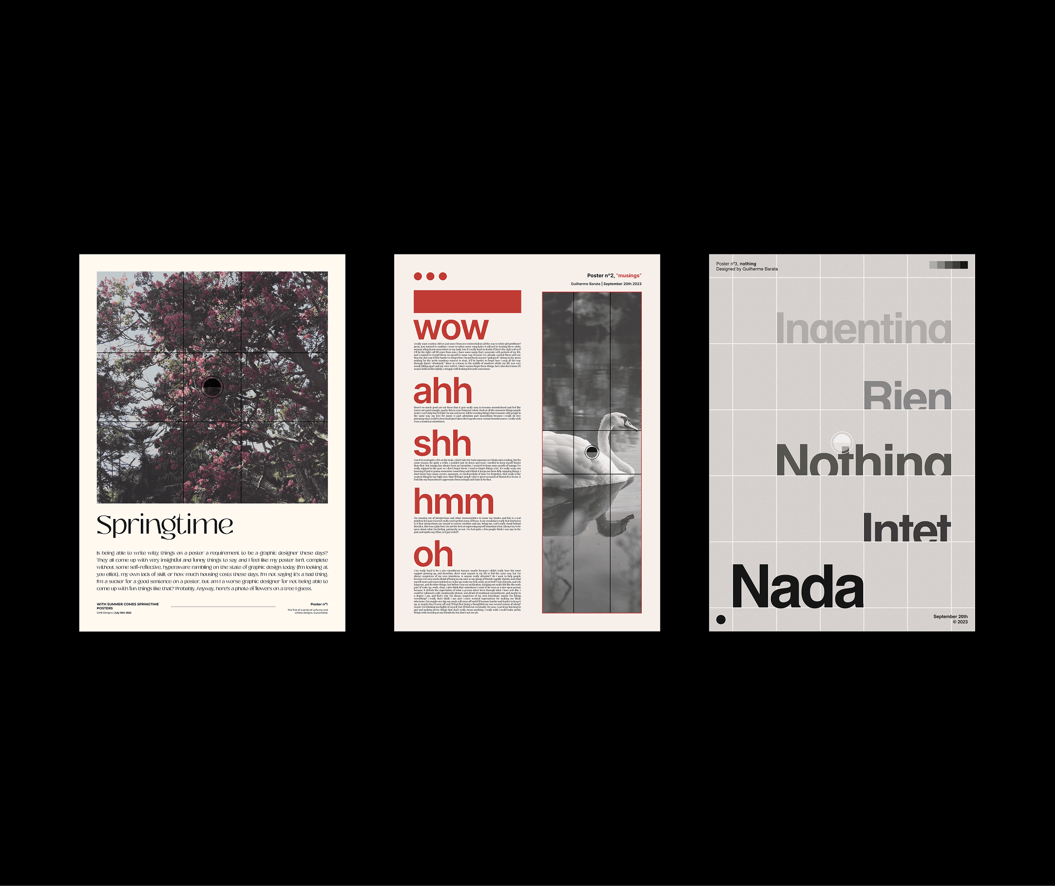 I wanted to use these posters to explore how far I’d come as a designer, and how much I still had to go, and I also wanted to try to create things that were not solely digital but instead could be physically present with me, so I themed some of these posters around songs I like, or the place I come from. Because arriving in a new country and staring at the blank walls was a bit too bleak.